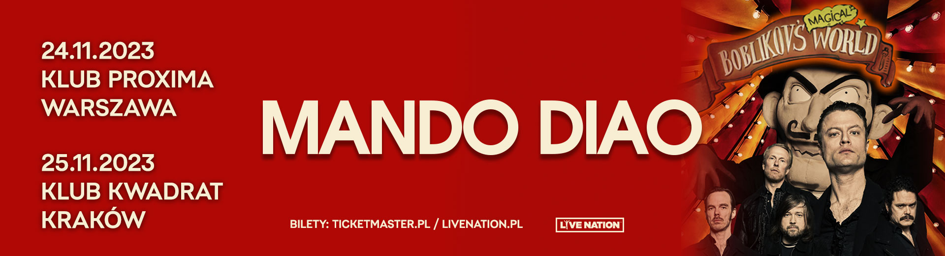 From 19.04, 11.00 AM, you will have the opportunity to be the first to buy a ticket to the Mando Diao concert as part of an exclusive pre-sale for Citi Handlowy card holders. Concert will take place 24.11.2023 at Proxima Club in Warsaw, and 25.11.2023 at Kwadrat Club in Cracow.