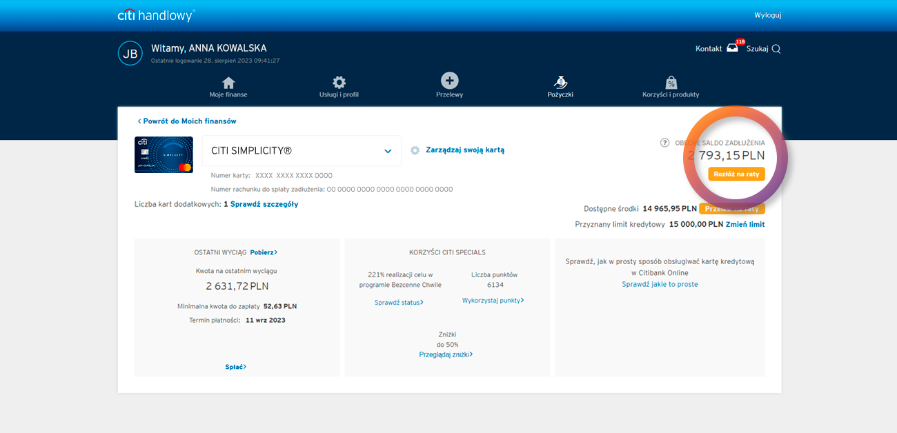 - Installments do not limit the possibility to enjoy the interest-free period on your card (56 days for cashless transactions). Interest is only charged on the amount of the Quick Cash (Przelew na Raty) and you may repay the other transactions entirely without any interest being charged on them