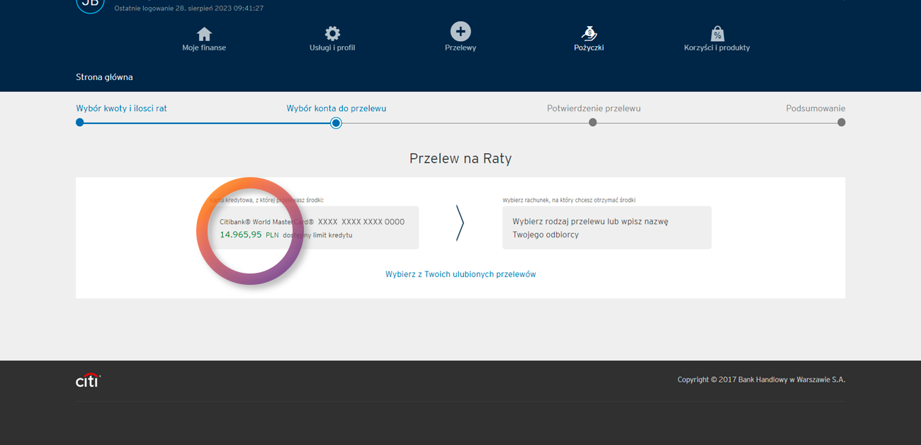 - You transfer a selected amount within the unused credit card limit to your account.