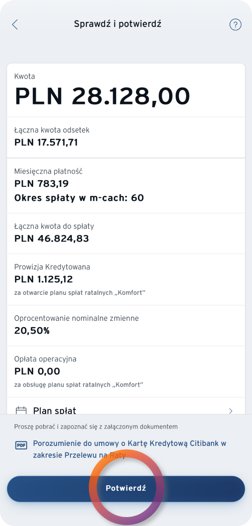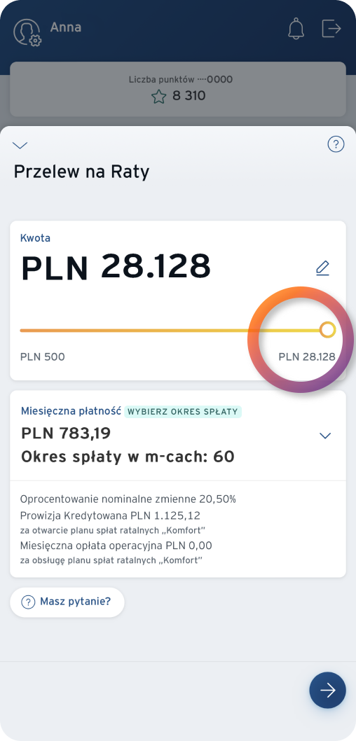 - You will repay borreowed funds in equal monthly installments (“Comfort” Installment Plan). You select the number of installments (between 6 and 60) and their amount.