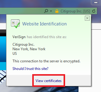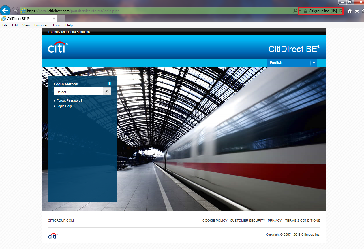 - On the login page, click on the padlock icon or "Citigroup Inc." words: