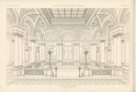 Ilustracja klatki schodowej w Pałacu Kronenberga z czasopisma Zeitschrift für Bauwesen z 1874 r. Źródło: Fundacja Kronenberga.