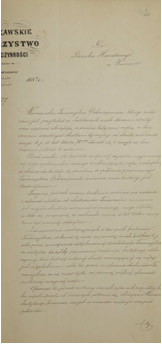 Prośba Warszawskiego Towarzystwa Dobroczynności do Banku Handlowego w Warszawie, aby kierownictwo banku przeznaczyło "jednorazowo pewną kwotę, która posłuży do otarcia łez niedoli i sieroctwu". 1884 r. Źródło: Archiwum Akt Nowych.