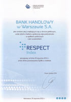 Citi Handlowy ponownie został zakwalifikowany do RESPECT Index - indeksu warszawskiej Giełdy Papierów Wartościowych, skupiającego 16 najbardziej odpowiedzialnych społecznie spółek. W nowej odsłonie projekt RESPECT mocno akcentuje atrakcyjność inwestycyjną spółek giełdowych, którą charakteryzuje m.in. jakość raportowania, poziom relacji inwestorskich czy ład informacyjny. Dzięki uwzględnieniu wśród kryteriów kwalifikacyjnych parametru płynności RESPECT Indeks, podobnie jak inne indeksy giełdowe, stanowi realny punkt odniesienia dla profesjonalnych inwestorów. Nacisk na kryteria związane z tymi wartościami to zasadnicza zmiana jaką GPW wprowadziła w stosunku do poprzedniej edycji.